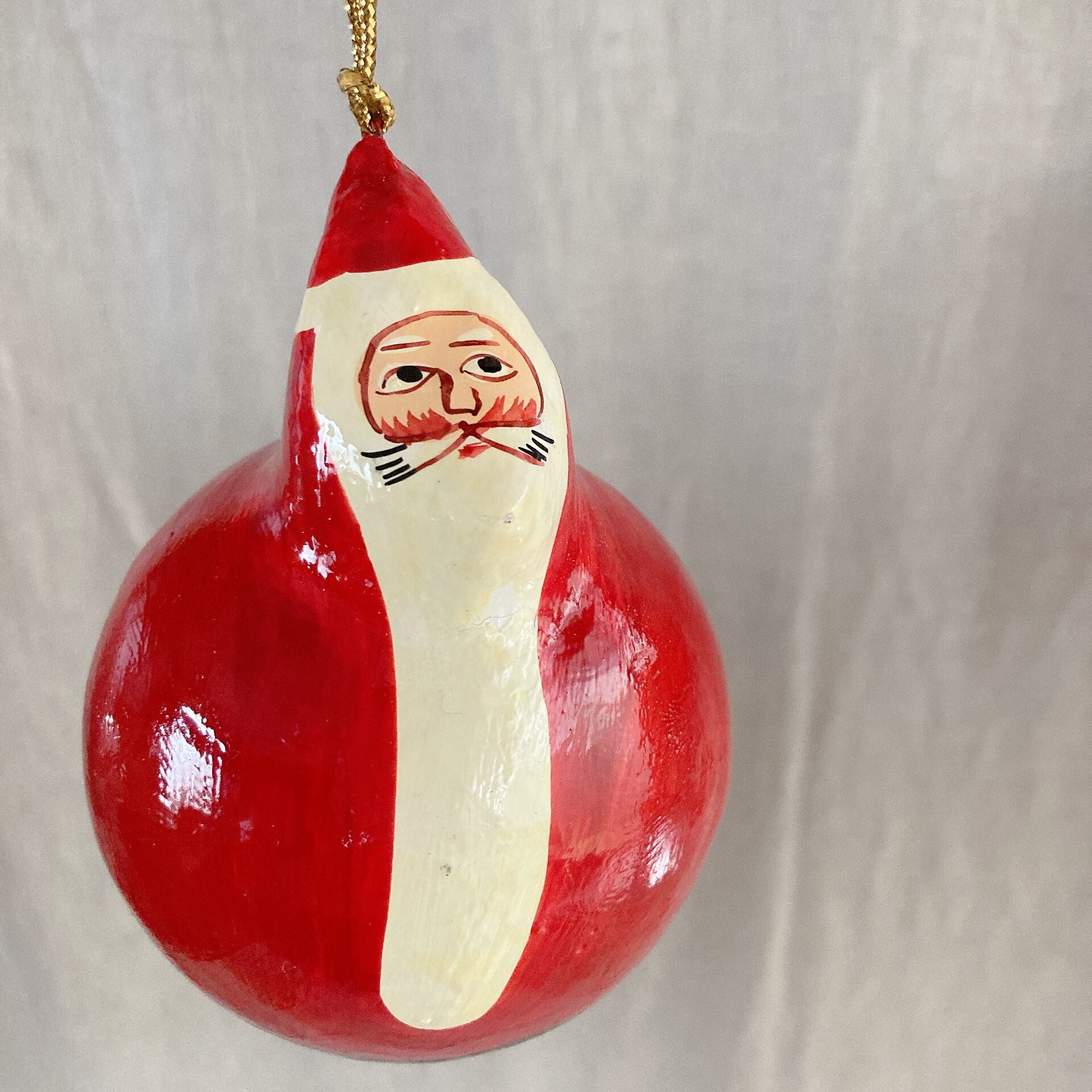 ひょうたんのような、ユーモラスな形のサンタクロースのオーナメント。